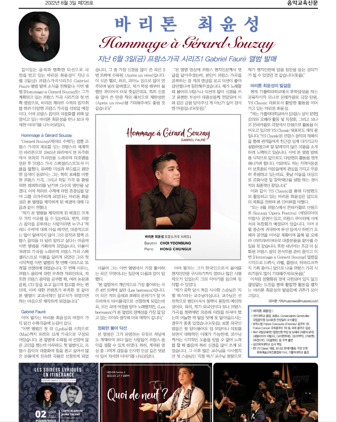바리톤 최윤성 프랑스가곡앨범 Hommage à Gérard Souzay 발매